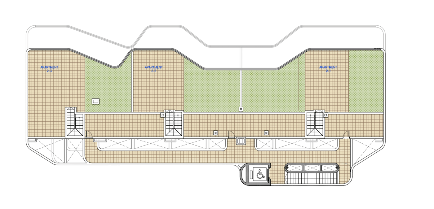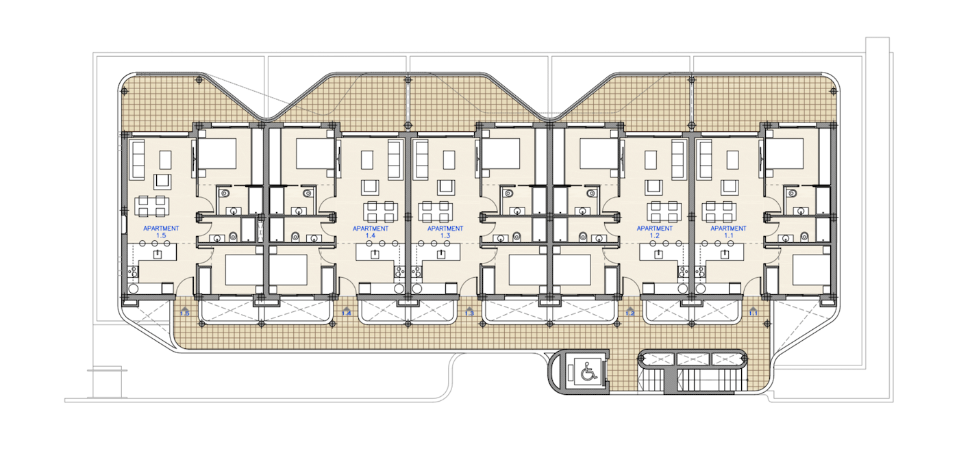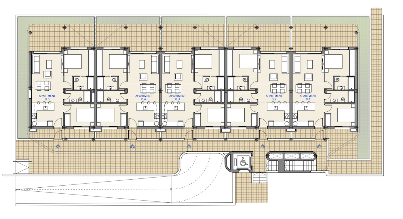 - 5 appartementen op de eerste verdieping met balkon en uitzicht op de golfbaan.