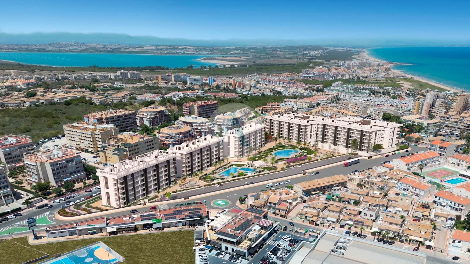 Met genoegen presenteren we je dit mooie nieuwe wooncomplex in Torre la Mata. Een bevoorrechte locatie om te genieten van de plaatselijke voorzieningen. Recht tegenover het winkelcentrum Torremarina, met een verscheidenheid aan winkels, restaurants, bars en een supermarkt. Verder ligt het prachtige zandstrand van La Mata op slechts 700 m afstand.