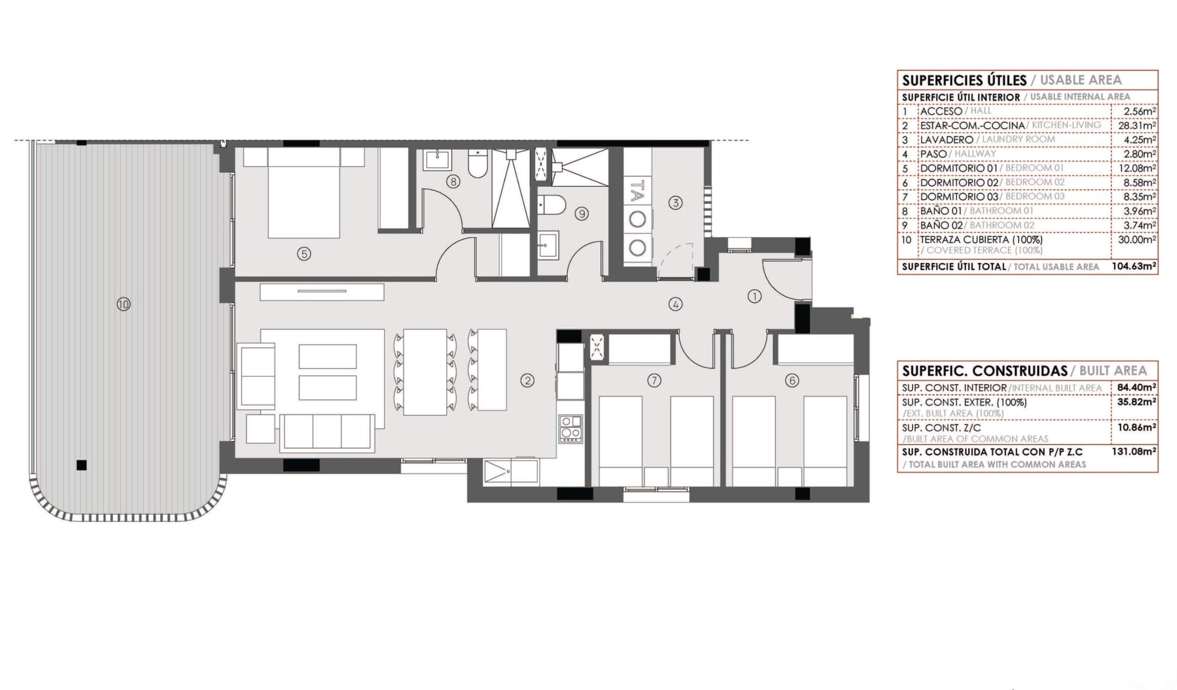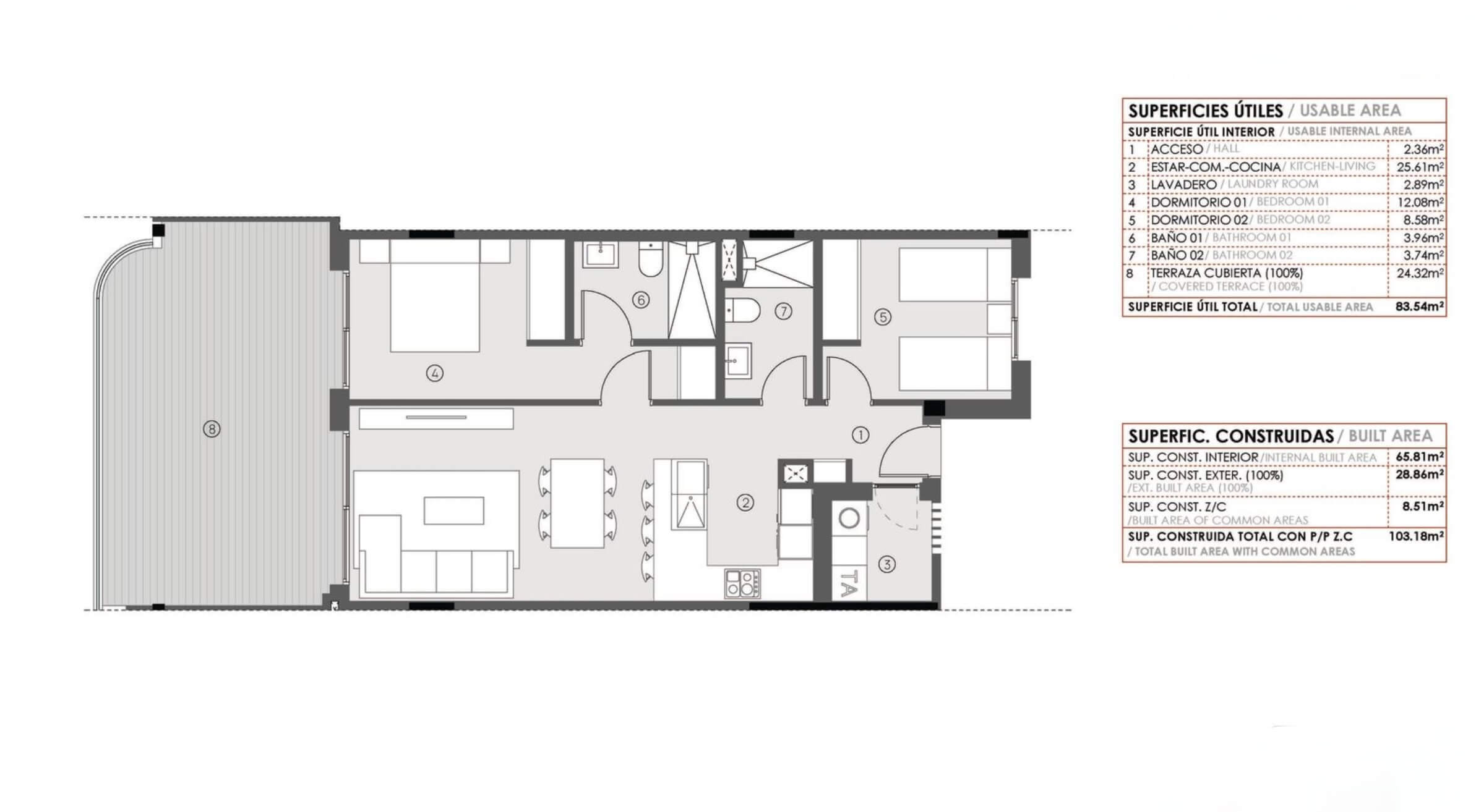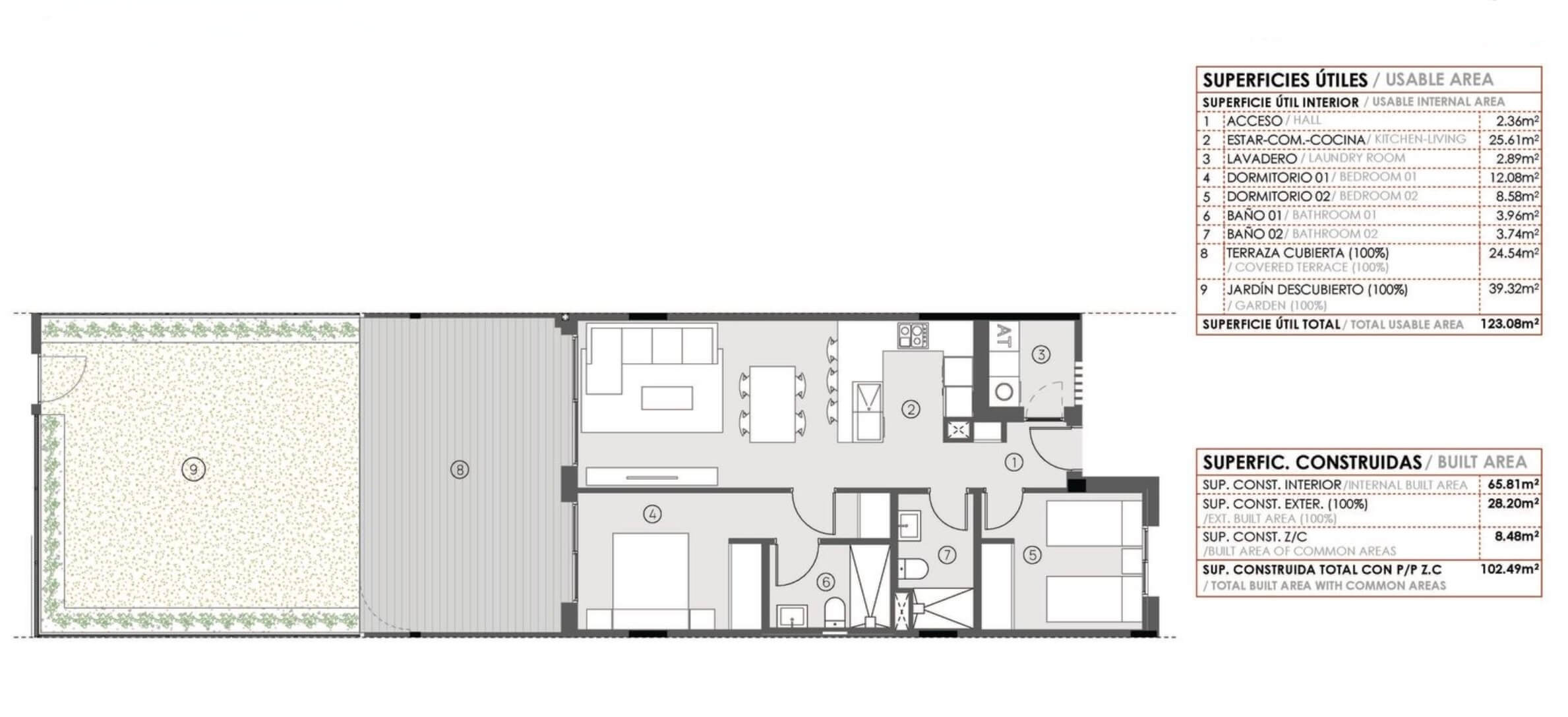 Alle appartementen worden overspoeld met zonlicht dankzij de uitstekende zuid- of zuidoost oriëntatie en uitzicht op de gemeenschappelijke ruimtes.