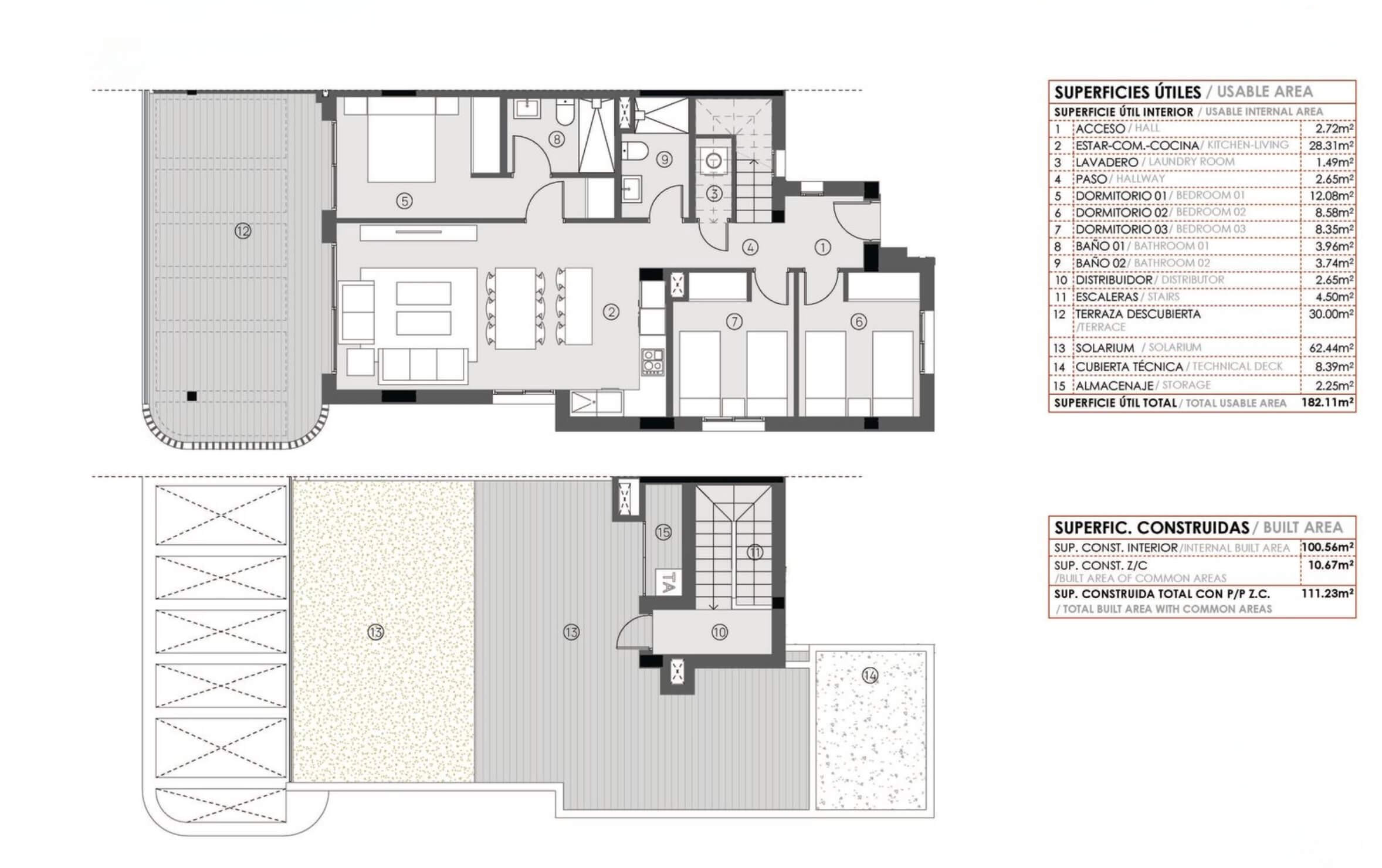 - Indeling met 2 of 3 slaapkamers, telkens met 2 badkamers